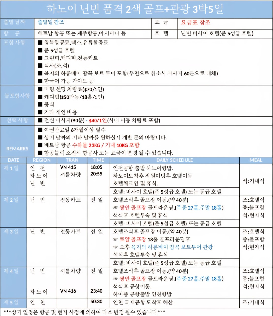⛳ 닌빈 골프+관광 투어 상품 특징
