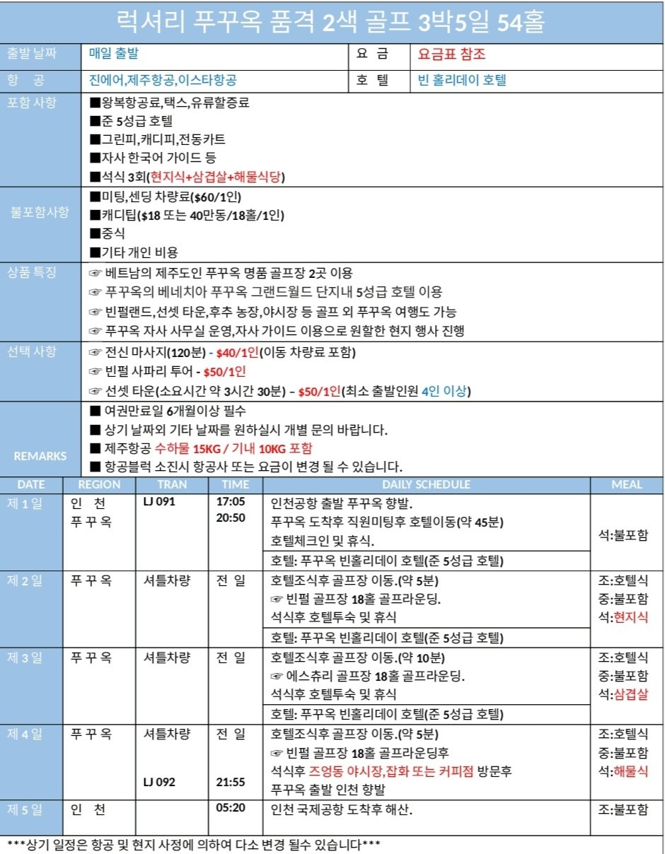 ⛳(2월-3월) 푸꾸옥 럭셔리 2색 3박5일 54홀BESTMDHOT