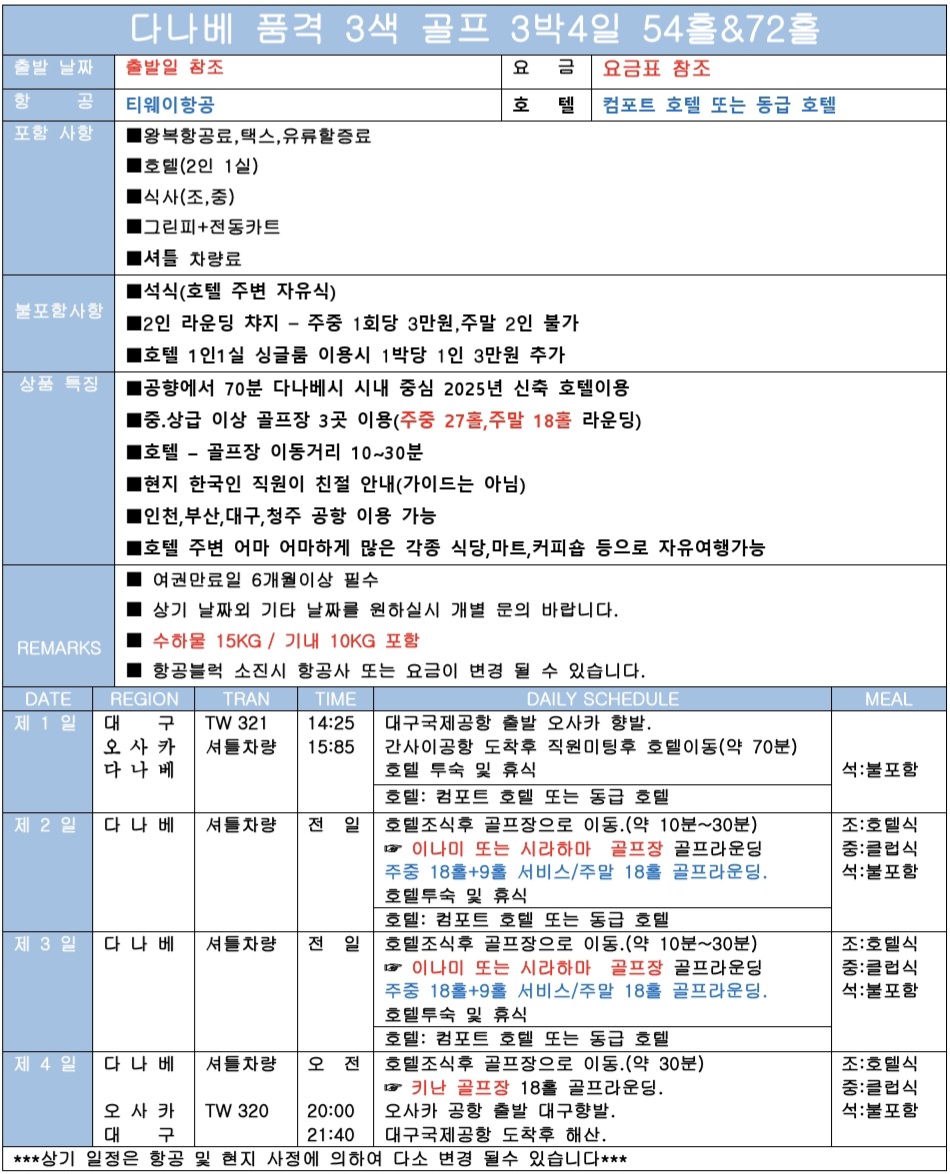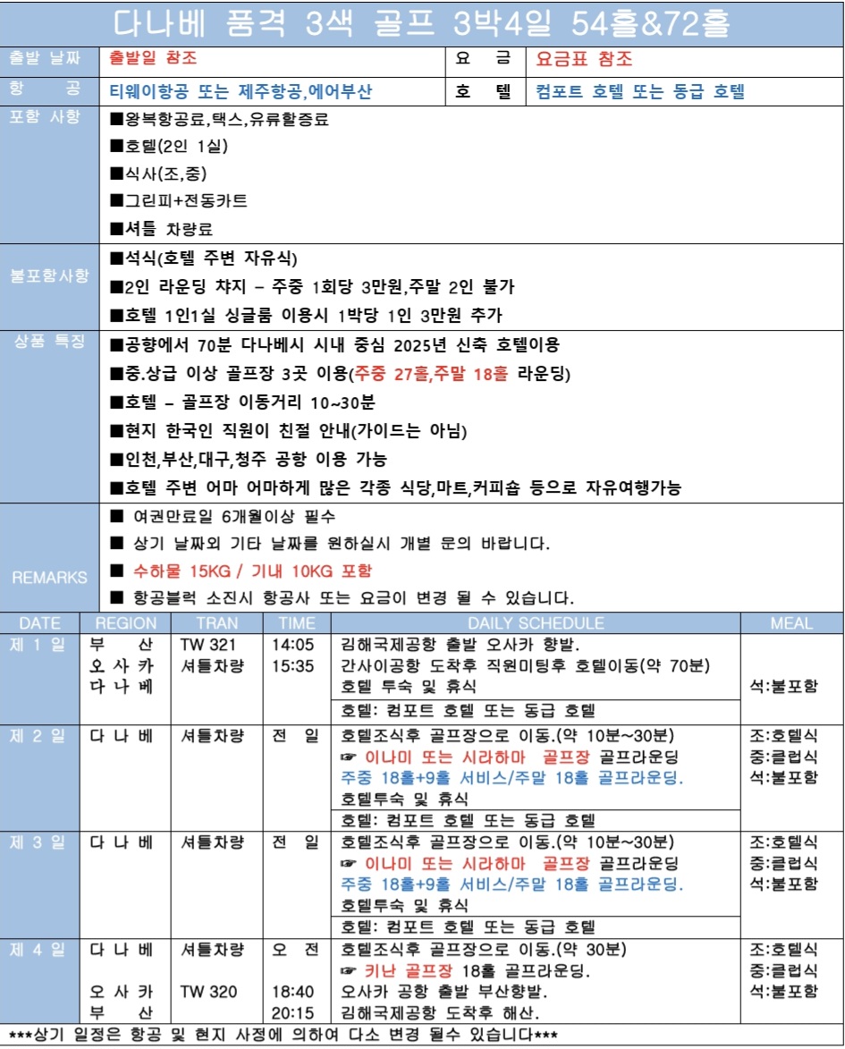 📍 매주 수요일 출발(72홀):별도 문의