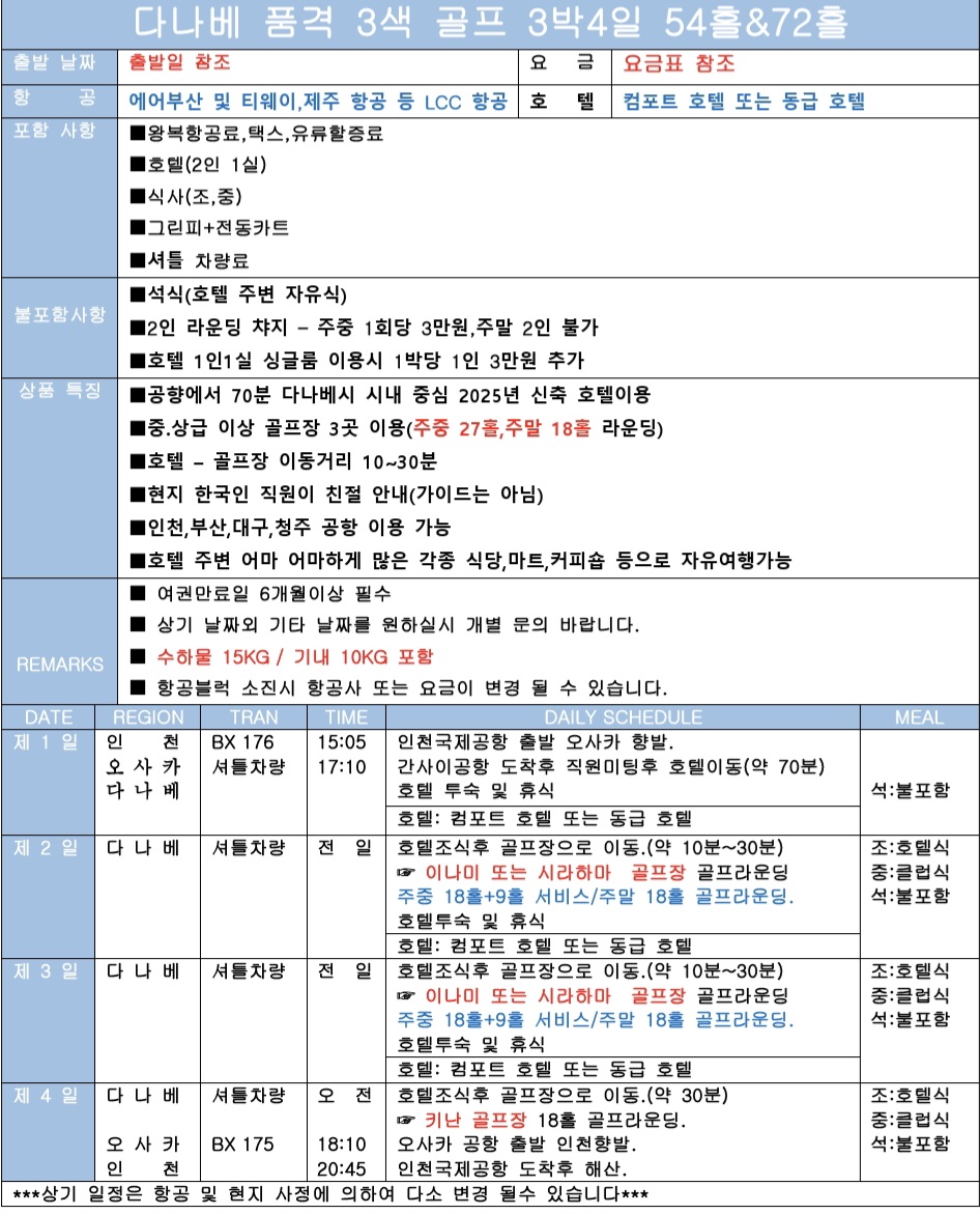 📍 매주 일,월요일 출발(72홀):별도 문의
